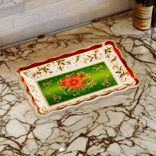 Vassoio Rettangolare Cm 32X21 Stella Di Natale Lamart
