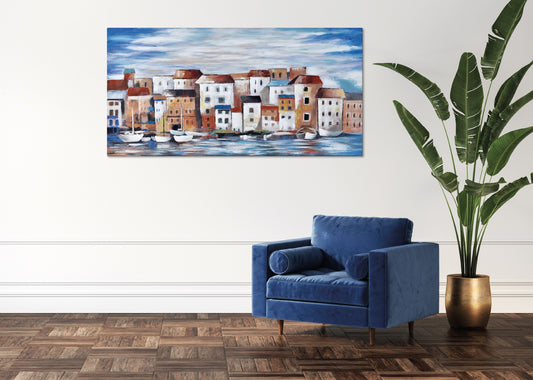 Quadro mare borgo sul mare 120x60cm