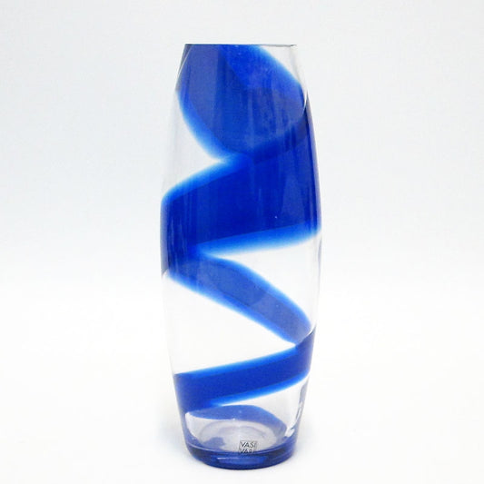 Vaso In Cristallo Trasparente E Blu Cm 32