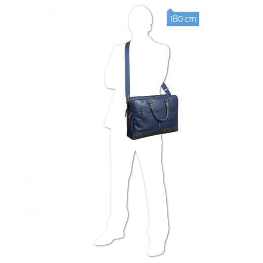 Cartella 2 Manici Sottile In Pelle Blu Scott