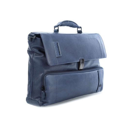 Cartella Con Patta E Tasca Frontale In Pelle Blu