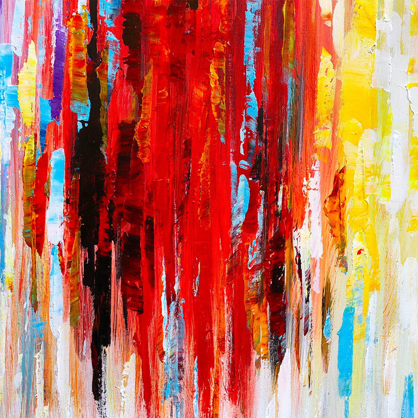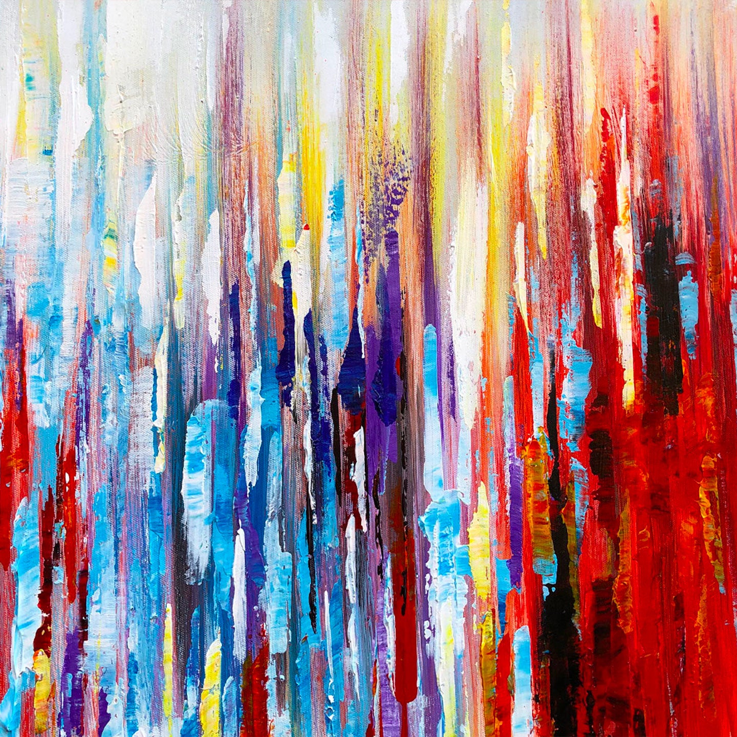 Frequenze è un quadro astratto moderno multicolore, interamente dipinto a mano su pregiata tela di cotone.